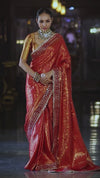 Banarasee Handwoven Semi Silk (Saubhagyavati Bhava) Lace Saree-Red